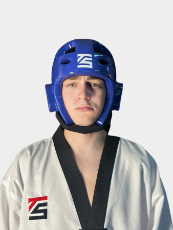 Шлем тхэквондо сверхлегкий профессиональный цельнолитой шлем эргономичной формы с закрытым верхом. Усиленная зона ушных раковин. Лобная часть шлема усиленна. Теменная и височная зоны с вентиляционными отверстиями. Крепление под подбородком эластичным ремнем с липучкой.